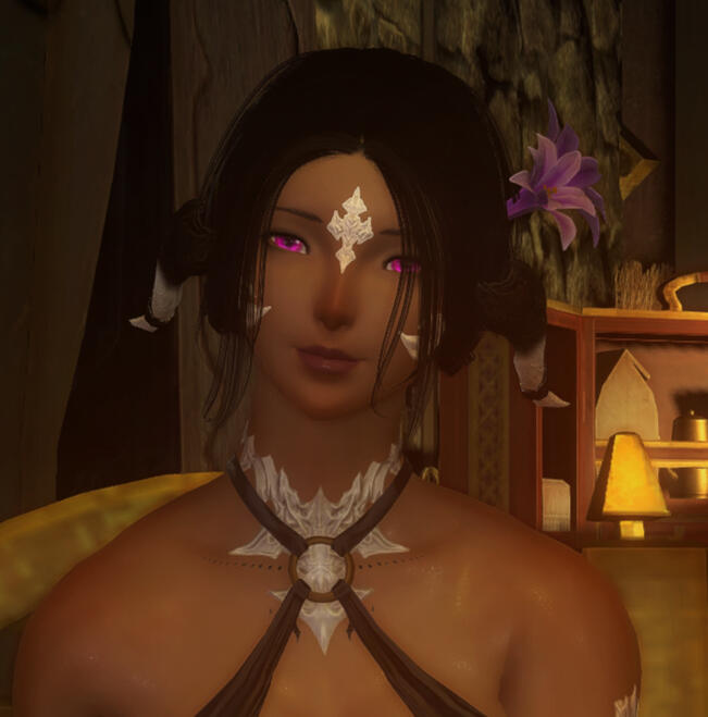 Ul'dah Local and chatty cat. Loves to hear the latest gossip but always keeps it a secret. New to hairdressing, massages and nails, but is eager to learn and happy to help out clients. A real go-getter.